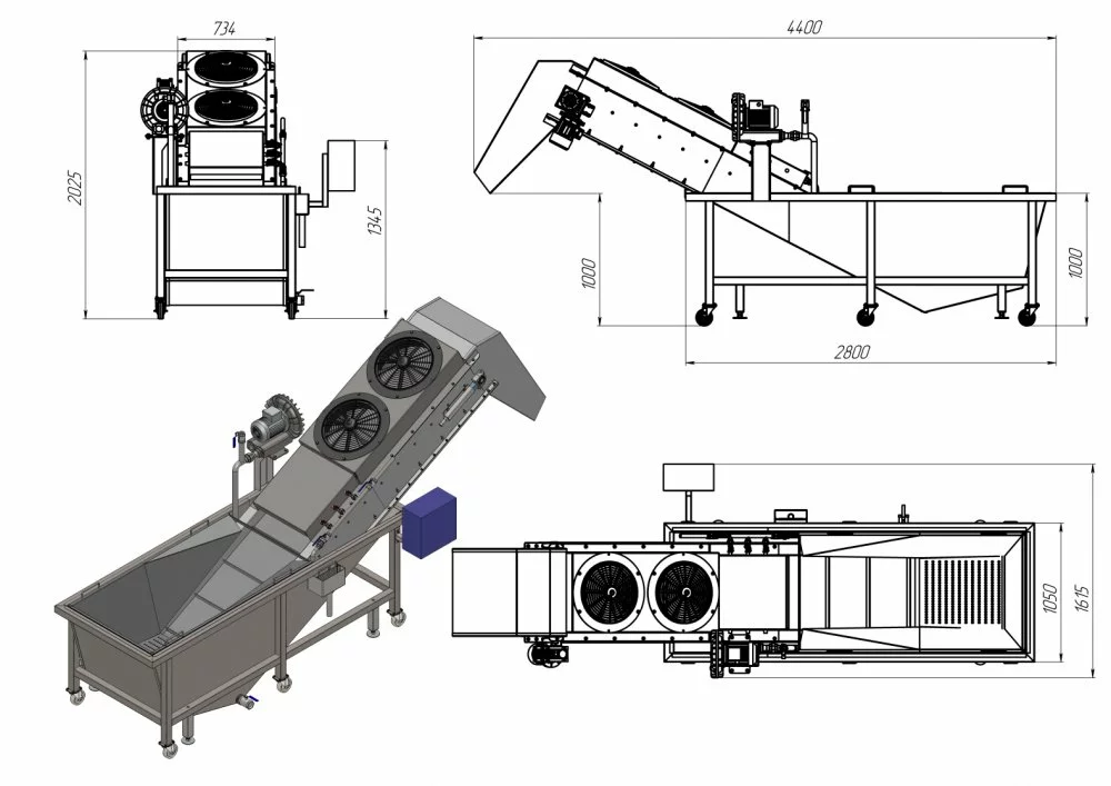 1.16. Установлена система обдува воздухом для осушки ягоды;